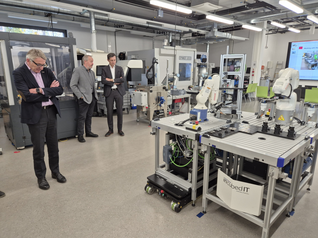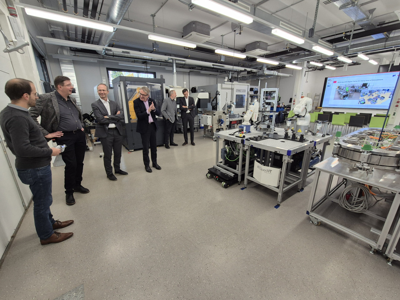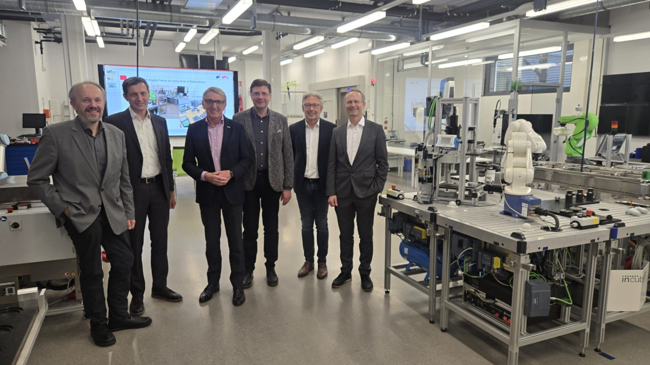 On 12 November 2025, Mr. Ing. Josef Herk, President of the Styrian Economic Chamber (WKO), visited the Research Center Smart Production at Graz University of Technology. Four institutes – IFT, IMAT, IIM and IMB – presented their research focuses, and opportunities for collaboration were explored, in particular how cooperation with the new Center of Excellence of WKO can be established. Follow-up meetings will be arranged for this purpose.